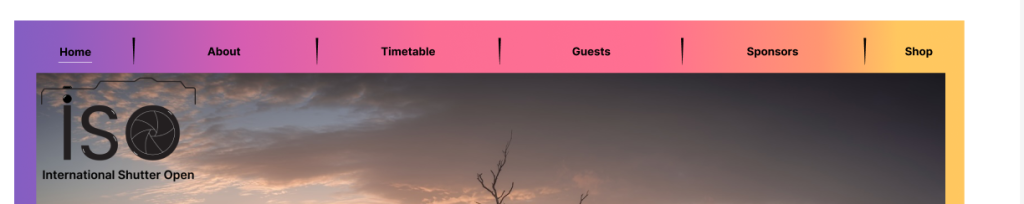 Another aspect of the design that received attention was the colour scheme. Recognizing the importance of colour in photography and visual communication, I opted to enhance the website’s visual appeal by introducing a high-contrast multicolour overlay. This addition not only adds vibrancy and dynamism to the design but also symbolizes the diversity of colours and creativity inherent in photography. Furthermore, I strategically positioned the ‘ISO’ logo on each page for easy brand recognition, ensuring it complements rather than overshadows important content.