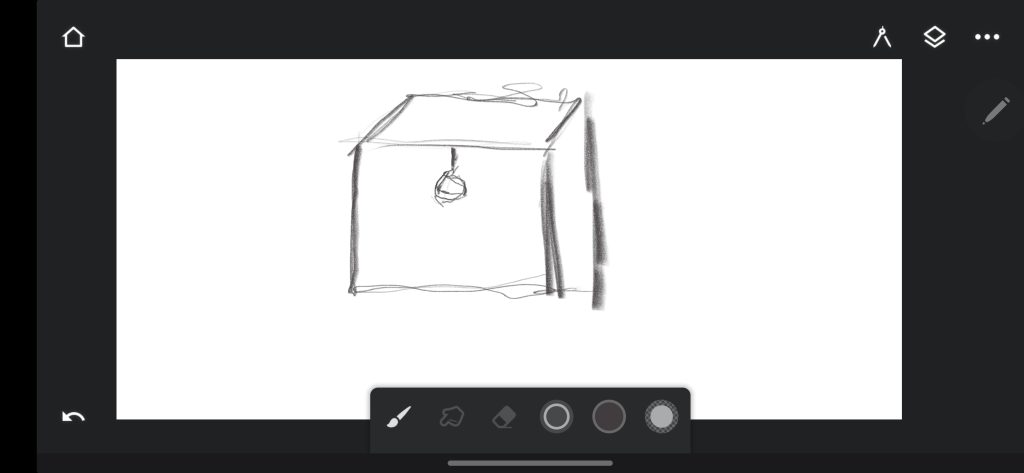 Behind this clean space, there will be a black door, slightly ajar, gently moving, and emitting faint sounds. This door acts as a visual and auditory symbol of the underlying chaos that sits behind the calm exterior. As the user moves closer to the door, the sound will grow more noticeable: subtle noises at first, developing into fragments of overlapping voices and shifting tones. The door represents the barrier between focus and distraction, between the person I present to the world and the constant noise within my mind.