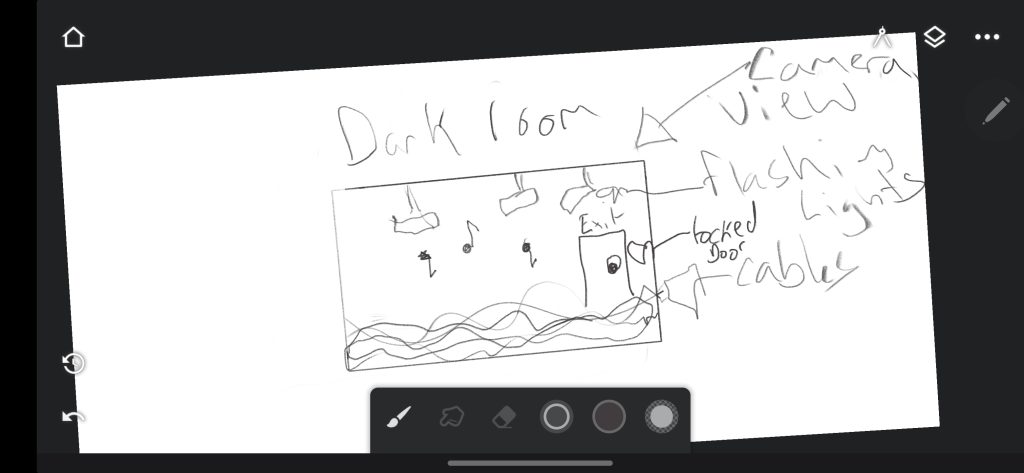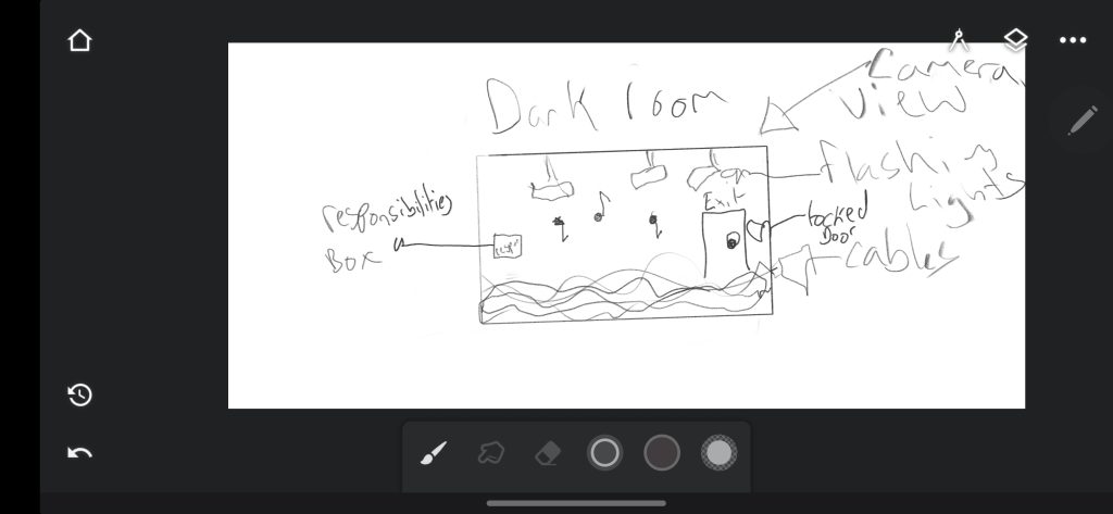 When the user enters the black room, the environment changes dramatically. Inside, there will be flickering lights, abstract shapes, shifting colours, and overlapping voices, each representing thoughts and ideas colliding. The chaotic space symbolises the inside of my mind; fast-moving, unpredictable, and energetic. The voices will overlap and echo, creating a sense of tension and overstimulation that mirrors how ADHD feels internally. The goal is not to overwhelm the user but to offer them a glimpse into that constant stream of input and noise that demands attention.