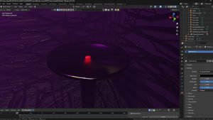 Blender’s Cycles rendering engine was selected to achieve realistic global illumination, as Eevee currently struggles with lighting accuracy in 360-degree VR environments. Initial render times averaged between 45 seconds and one minute per frame. By adjusting lighting, sampling, and noise settings, this was reduced to approximately 18 seconds per frame, resulting in a total render time of around six and a half hours. The OptiX denoiser was used in the viewport for performance, while OpenImageDenoise was used for the final render.