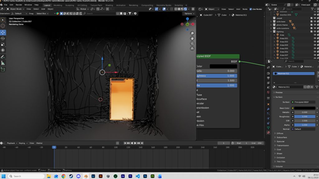 I focused heavily on lighting, sound, and the blending of realism with abstract elements rather than pursuing hyper-realism, which would have significantly increased production time. This project has also given me ideas for future development beyond university, potentially expanding into an interactive VR experience that could be used in educational or seminar settings to help psychologists better understand patient experiences. As stated at the beginning of the video, this project reflects aspects of my own experience, having been diagnosed with ADHD in my twenties, and aims to encourage understanding and empathy towards people with neurological disorders.